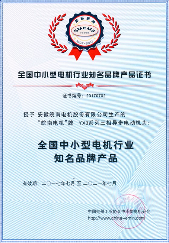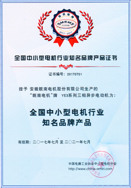 會上,皖南電機被授予“全國中小型電機行業(yè)知名品牌產(chǎn)品”和“中小型電機分會工作先進單位”稱號,并分別頒發(fā)了榮譽證書。